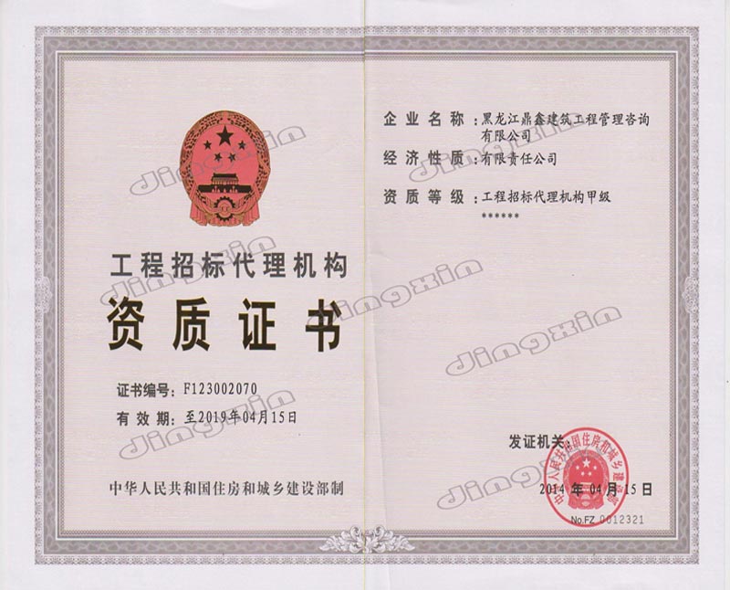 黑龍江鼎鑫建筑工程管理咨詢有限公司成立于2005年,注冊資金400萬元。具備中華人民共和國住房和城鄉(xiāng)建設部批準的工程招標代理機構(gòu)資格、中華人民共和國財政部批準的政府采購招標代理機構(gòu)資格、黑龍江省商務廳批準的機電產(chǎn)品國際招標代理機構(gòu)資格、中華人民共和國住房和城鄉(xiāng)建設部批準的工程造價咨詢甲級資質(zhì)、黑龍江省住房和城鄉(xiāng)建設廳批準的房屋建筑工程監(jiān)理乙級(市政公用工程監(jiān)理乙級資質(zhì))。主要從事建設工程及政府采購招標、造價咨詢、工程監(jiān)理、項目管理等業(yè)務。